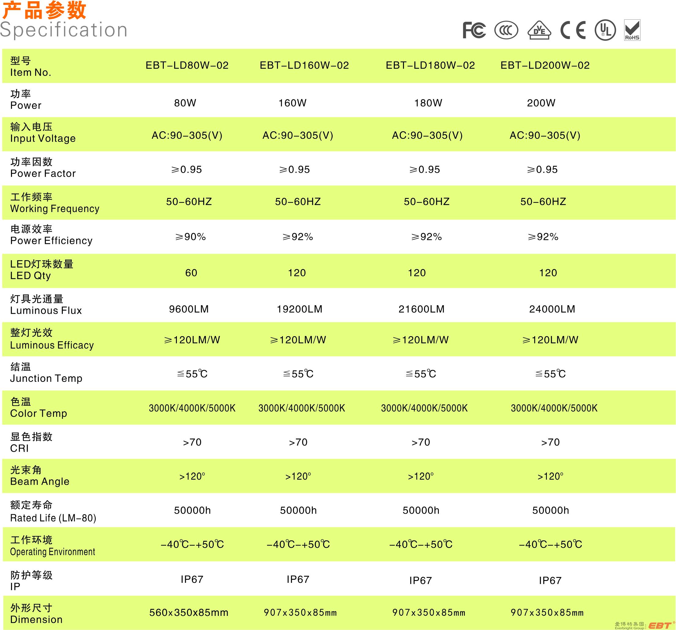 產(chǎn)品描述:采用國(guó)際知名品牌芯片,高亮度,低光衰; 防水防塵防腐蝕; 采用通孔結(jié)構(gòu)散熱,使用壽命長(zhǎng); 科學(xué)配光,適用多種場(chǎng)所。